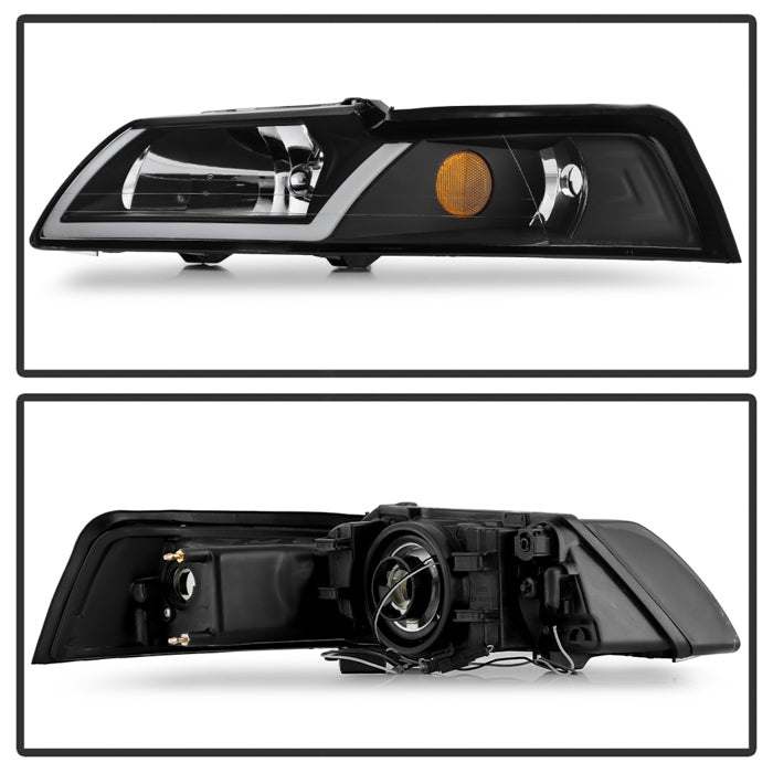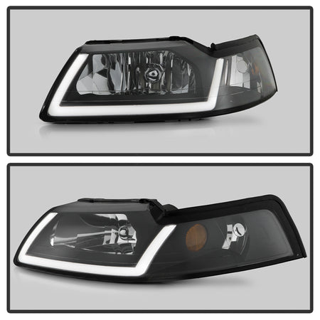 ( xTune ) Ford Mustang 99-04 Crystal Headlights with Led Light Bar - Black