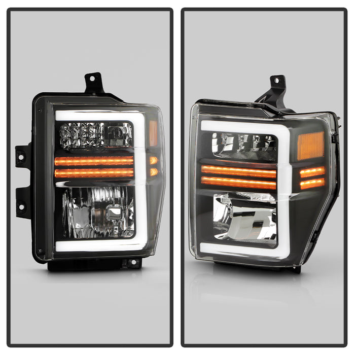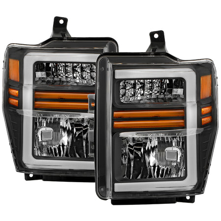 ( xTune ) Ford F250/350/450 Super Duty 08-10 OEM Headlights with Led Light Bar - Black
