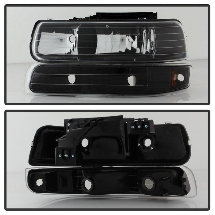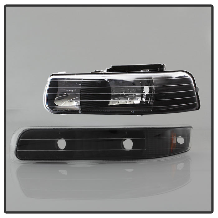 ( xTune ) Chevy Silverado 1500/2500 99-02 / Chevy Silverado 3500 01-02 / Chevy Suburban 1500/2500 00-06 / Chevy Tahoe 00-06 Amber Crystal Headlights With Bumper Lights - Black