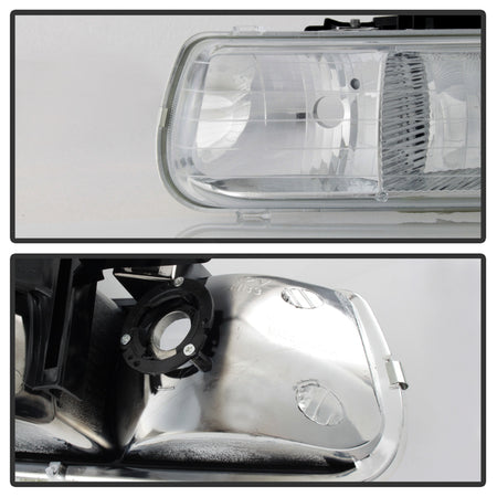 ( OE ) Chevy Silverado 1500/2500 99-02 / Chevy Silverado 3500 01-02 / Chevy Suburban 1500/2500 00-06 / Chevy Tahoe 00-06 Amber Crystal Headlights - Chrome