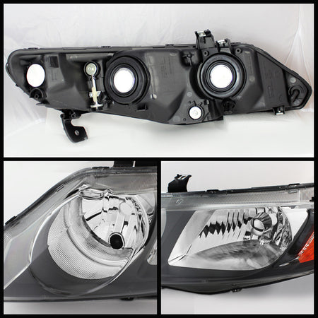 ( xTune ) Honda Civic 06-11 4dr Crystal Headlights Amber- Black