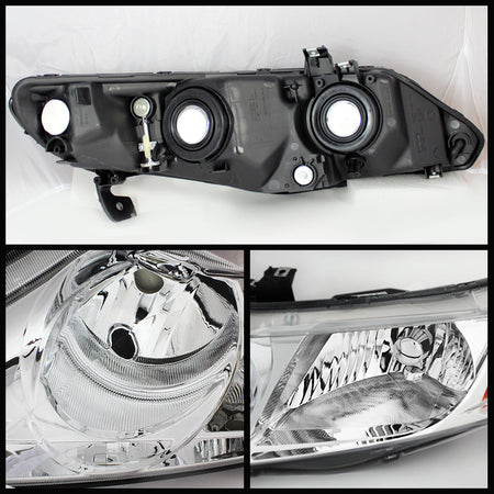 ( OE ) Honda Civic 06-11 4dr Crystal Headlights Amber- Chrome