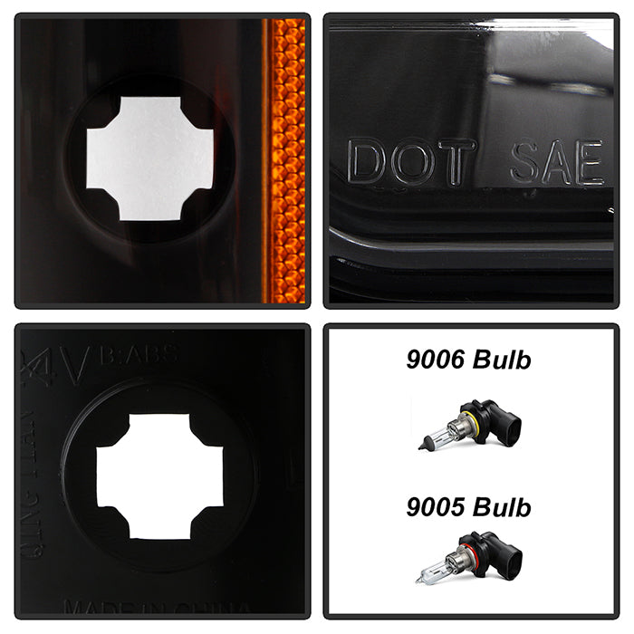 ( xTune ) Chevy/GMC C/K Series 1500/2500/3500 88-93 / Chevy Blazer 92-93 / Chevy Silverado 88-93/ Chevy/GMC Suburban 88-93 / GMC Sierra 88-93 / GMC Yukon 92-93 (don‘t fit model w/sealed beam headlights) Crystal Headlights W/ Corner & Bumper - Black