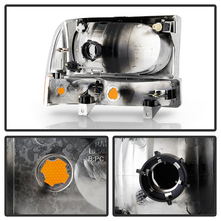 ( Akkon ) Ford F250 F350 F450 Superduty Excursion 99-04 Crystal Headlights With All Amber Bumper Lights - Low Beam-HB5(Not Included) ; High Beam-HB5(Not Included) ; Signal-3157(Not Included) - Chrome