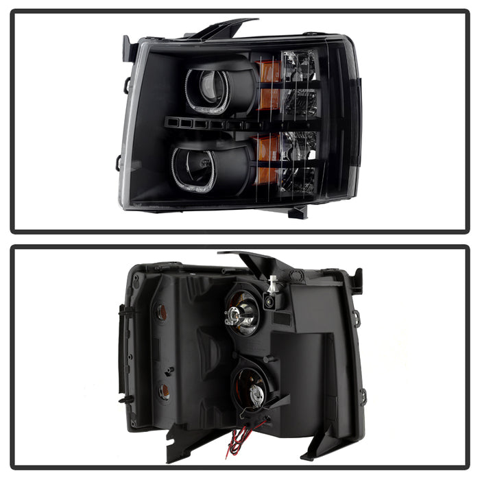 ( Akkon ) Chevy Silverado 1500/2500/3500 07-13 LED Halo Projector Headlights - Black