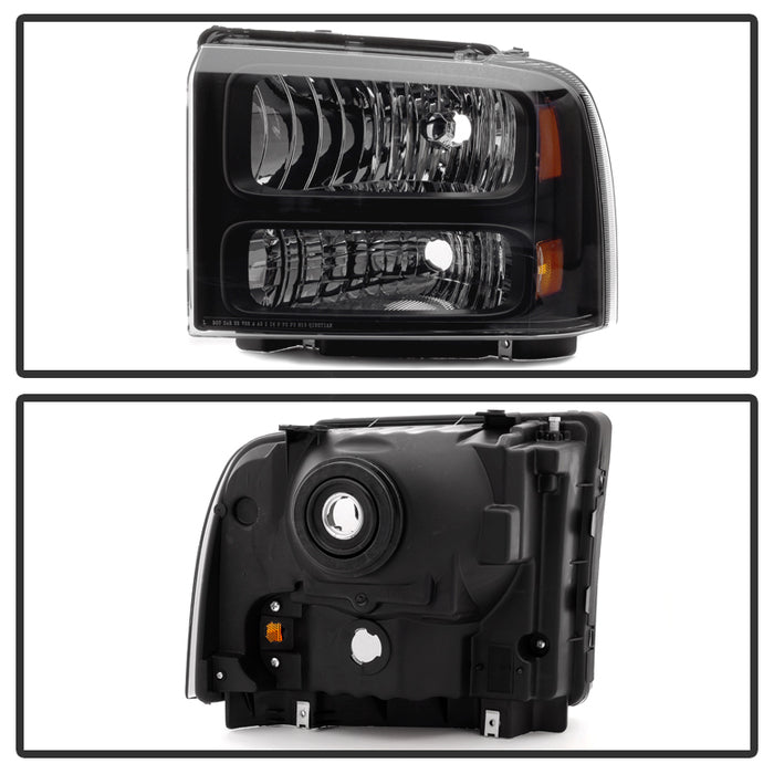 ( OE ) Ford F250 F350 F450 Superduty Excursion 99-04 Headlights (05-07 Harley Style Convert to 99-04 Come with Bulbs Wiring Harness and Instruction) - Black
