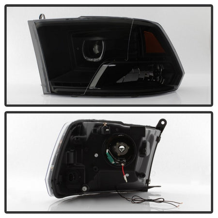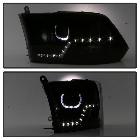 ( Akkon ) Dodge Ram 1500 09-18 / Ram 2500/3500 10-19 Projector Headlights - Halogen Model Only ( Not Compatible With Factory Projector And LED DRL ) - LED Halo - Low Beam-H9(Included) ; High Beam-H9; Signal-3157(Not Included) - Black Smoked