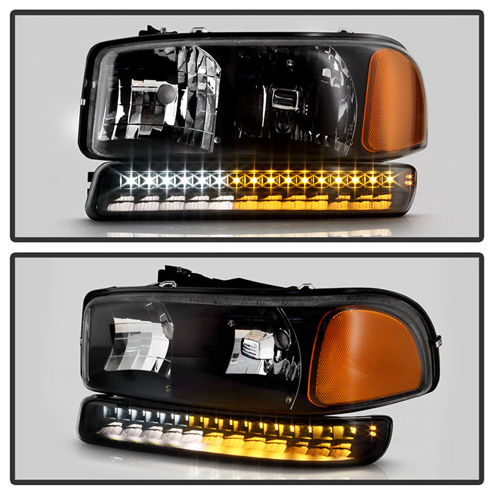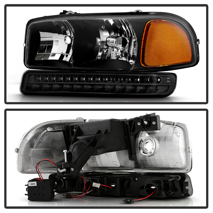 ( xTune ) GMC Sierra 99-06 /Yukon 00-06 ( Don‘t fit Denali and C3 Model ) Headlights & LED Bumper Lights - Black