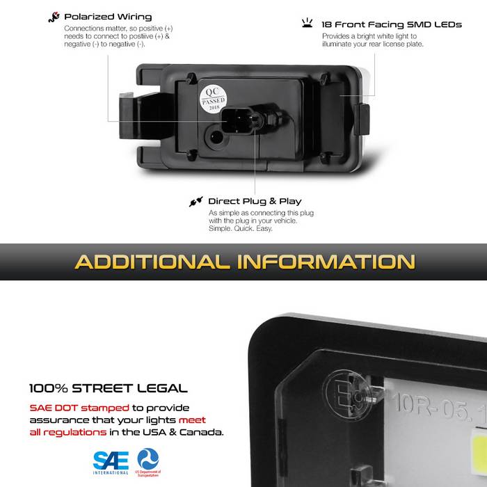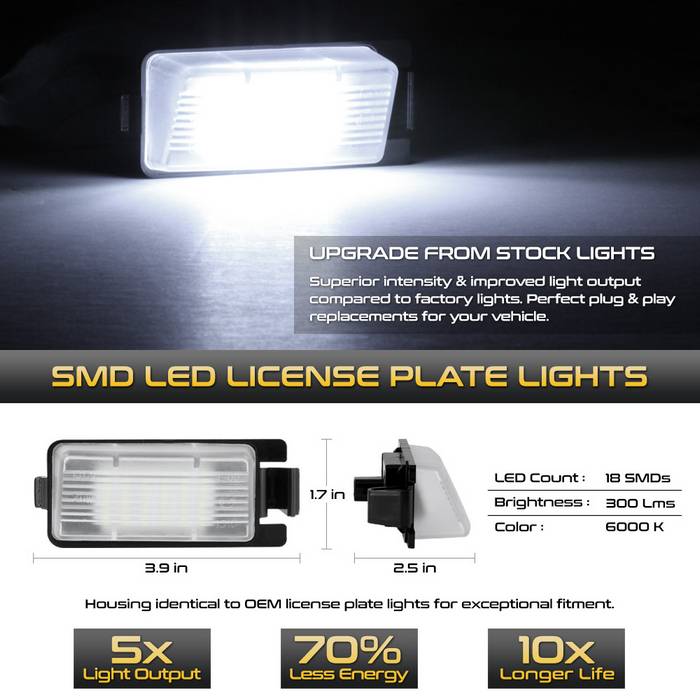 ( xTune ) License Plate Bulb Assembly. Plug & Play Install - White 5500K - OEM Connector - 07-12 Nissan Versa / 09-18 GTR / 09-14 Cube / 09-12 Sentra / 03-08 350Z / 09-18 370Z / 11-17 Leaf / 03-13 Infiniti G25 G35 G37 14-15 Infiniti Q60