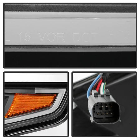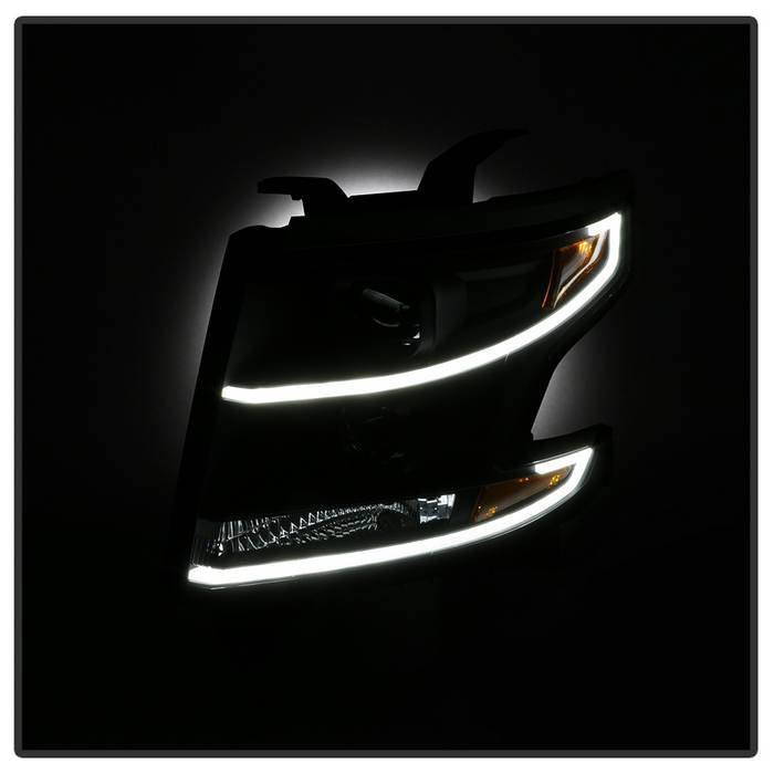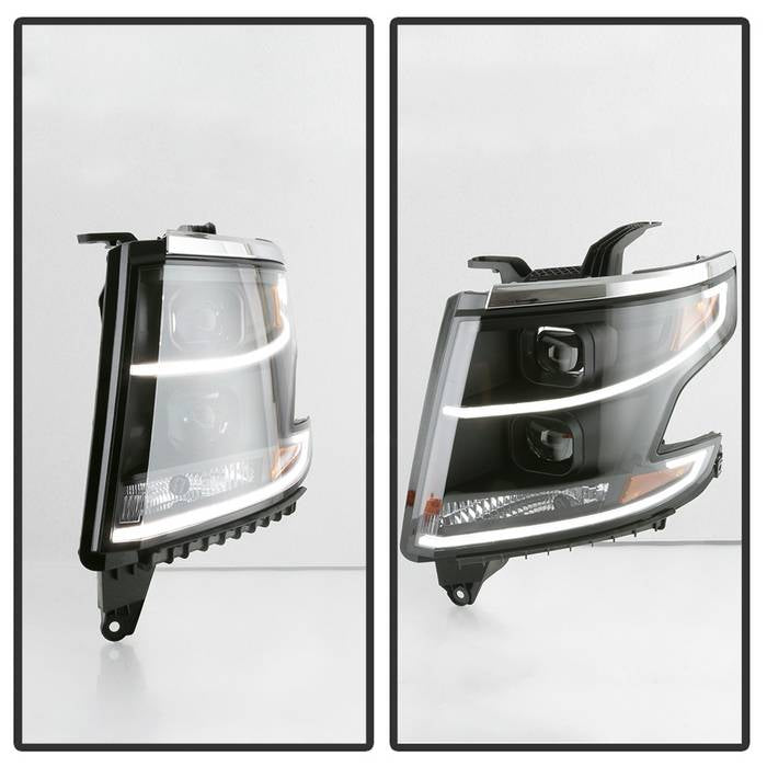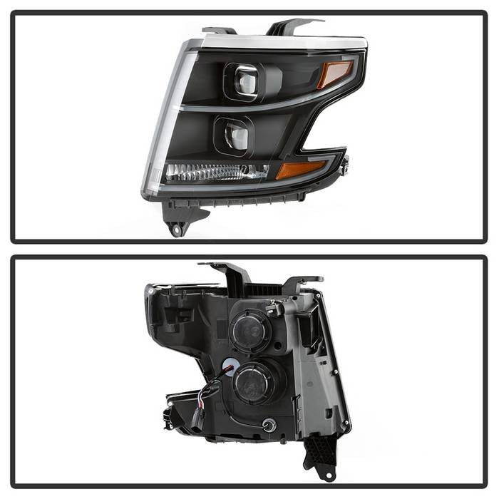 ( Akkon ) Chevy Tahoe / Suburban 2015-2018 DRL Light Bar Projector Headlights - Black - Low Beam - H7(Included) ; High Beam - H7(Included) ; Signal - 7440(Included)