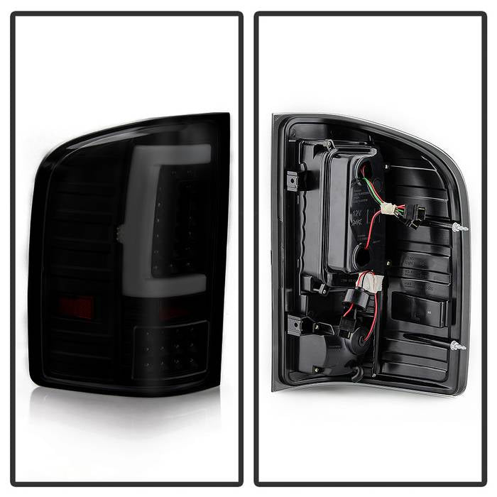 ( xTune ) Chevy Silverado 1500 07-13 2500HD/3500HD 07-14 GMC Sierra 3500HD Dually Models 07-14 ( Does Not Fit Model With Reverse Bulb 921 ) Version 2 Light Bar LED Tail Lights - Black Smoke