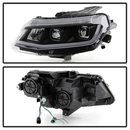 ( Akkon ) Chevy Camaro 2016-2018 Halogen Model Only ( Don‘t Fit factory HID Models and RS or V6 1LE Track Performance Package ) Projector Headlights With Light Tube DRL - Low beam-H7(Not Included) ; High Beam-H9(Included) ; Signal-7440A(Included) - Black