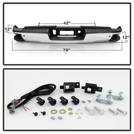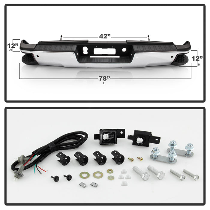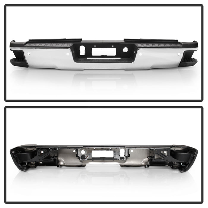 ( xTune ) Chevy 2500HD 3500HD 15-19 / GMC Sierra 2500HD 3500HD 15-19 ( Come with Corner Steps Park Assist Sensor Holes Bracket and Step Pads )( Park Assist Sensors NOT Included ) Rear Steel Bumper - Chrome ( Part Link # GM1103183 OEM # 84077957-PFM )