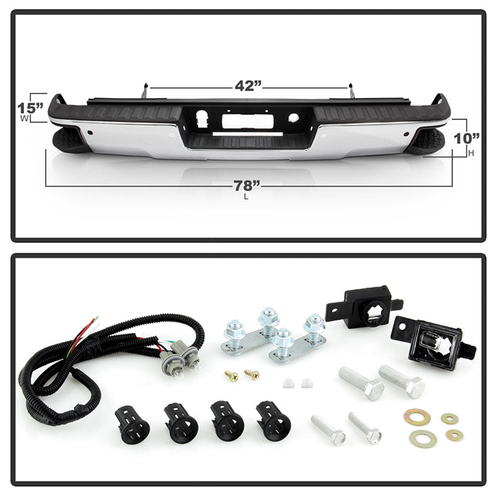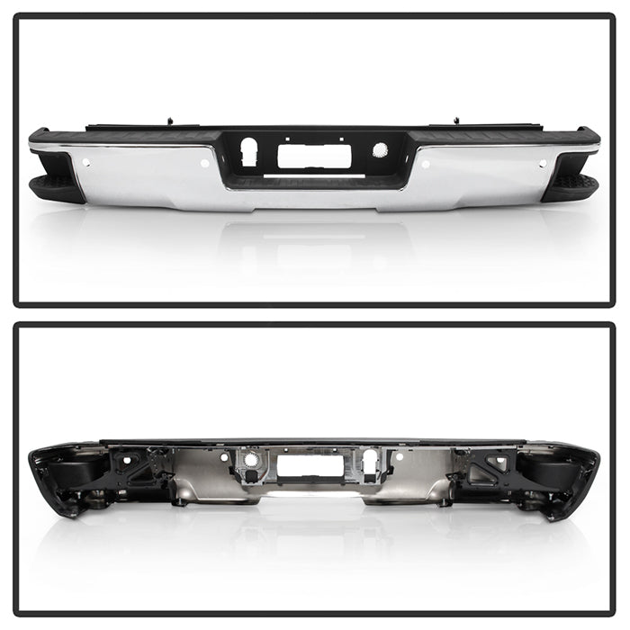 ( xTune ) Chevy 1500 14-18 / GMC Sierra 1500 14-18 ( Come with Corner Steps Park Assist Sensor Holes Bracket Hardware and Step Pads )( Park Assist Sensors NOT Included ) Rear Steel Bumper - Chrome ( Part Link # GM1103175 OEM # 84077959-PFM )