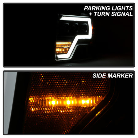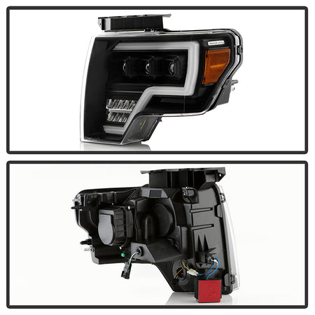 ( Akkon ) Ford F150 09-14 Projector Headlights - Halogen Model Only ( Not Compatible With Xenon/HID Model ) Full LED DRL Projector Headlights- Black