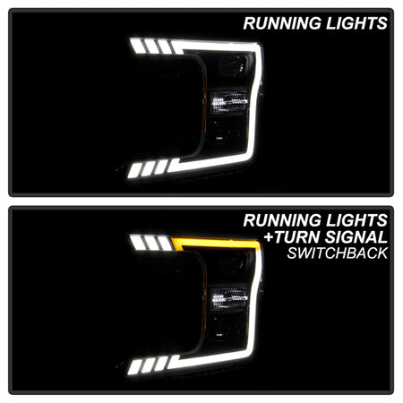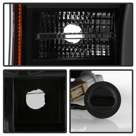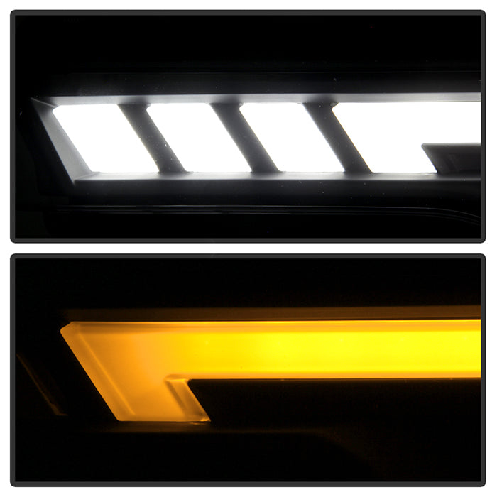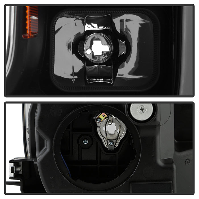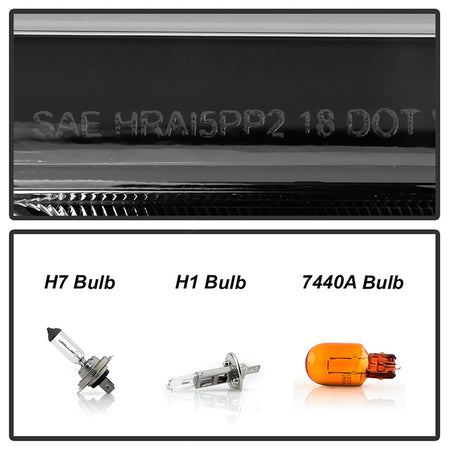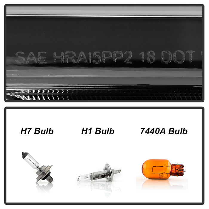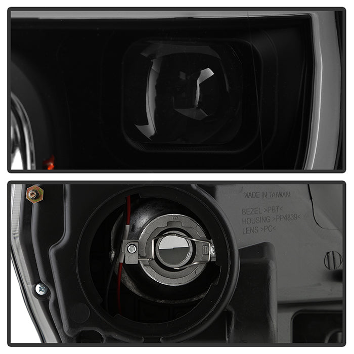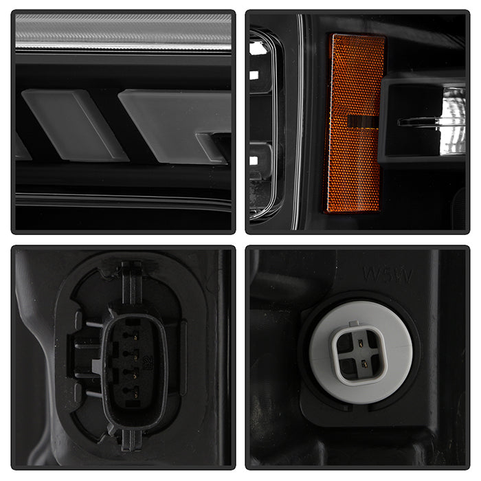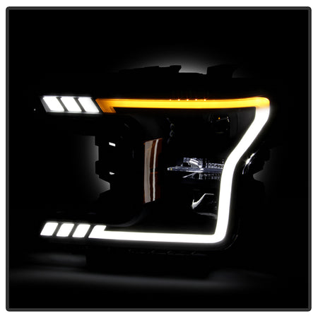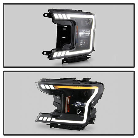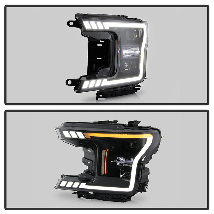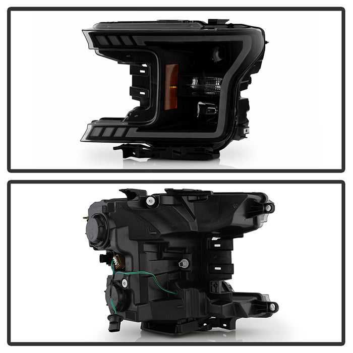 ( Akkon ) Ford F150 2018-2020 Halogen Models Only DRL LED Light Bar Projector Headlights - Black Smoked - Low Beam-H7(Included) ; High Beam-H1(Included) ; Signal - 7440A(Included)