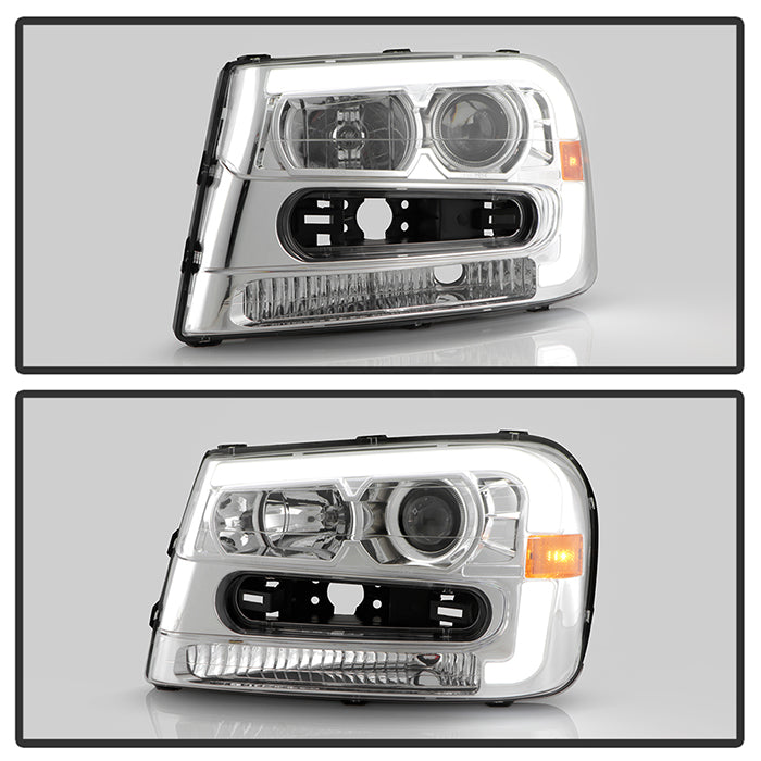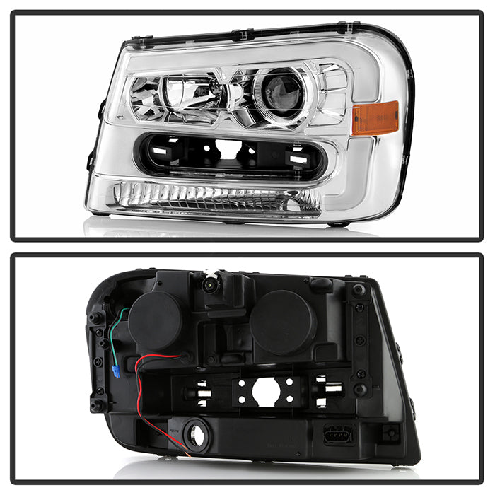( Akkon ) Chevy Trailblazer 02-09 Projector Headlights - Light Bar DRL - Low Beam-H7(Included) ; High Beam-H1(Included) ; Signal-P27(Not Included) - Chrome