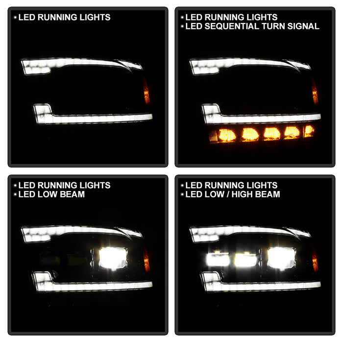( Akkon ) Dodge Ram 1500 09-18 / Ram 2500/3500 10-19 Halogen Model Only ( Not Compatible With Factory Projector And LED DRL ) Full LED Headlights - Black ( High Beam LED - Low Beam LED )