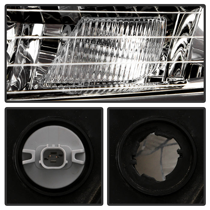 These crystal headlights are designed to match OEM specifications for fit and light output. They improve front-end visibility and add a sharp, refreshed look to your vehicle. Made with durable, weather-resistant materials for long-lasting performance. Easy to install and compatible with most factory mounting points.