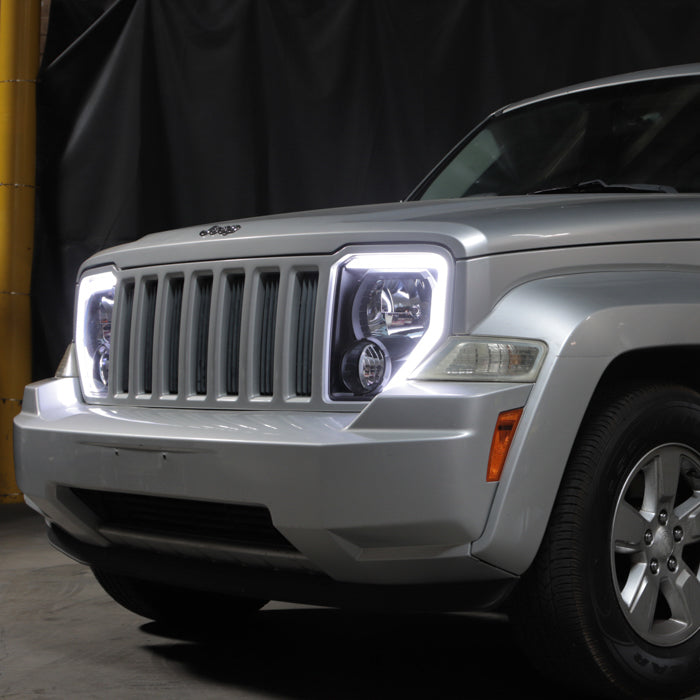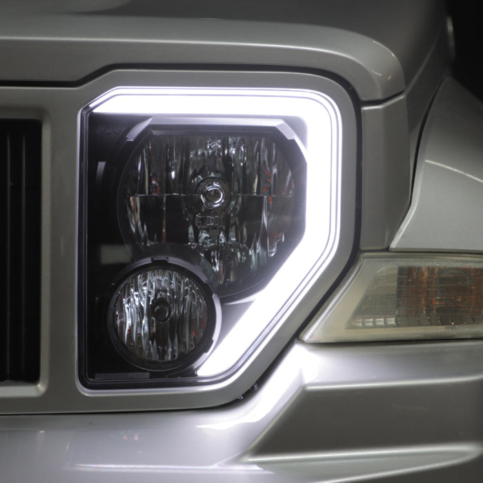 ( Akkon ) 2008-2012 Jeep Liberty Crystal Headlights With Light Bar - Sets - Black