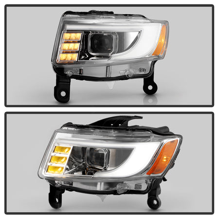 ( xTune ) Jeep Grand Cherokee 2014-2016 Led Light Bar Projector Headlights - Left and Right - Chrome