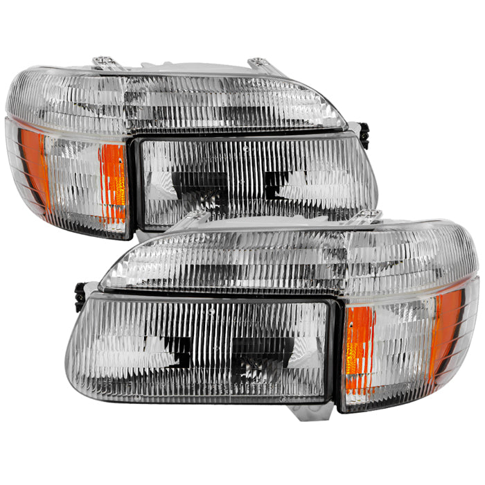 These crystal headlights are designed to match OEM specifications for fit and light output. They improve front-end visibility and add a sharp, refreshed look to your vehicle. Made with durable, weather-resistant materials for long-lasting performance. Easy to install and compatible with most factory mounting points.