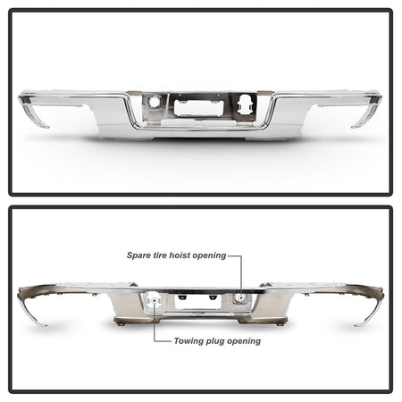 ( xTune ) Chevy Colorado 15-19 / GMC Canyon 15-19 w/o Parking Sensor Holes Rear Bumper Face Bar Rear Bumper Face Bar ( Compatible without Parking Sensor Model Only ) - Chrome (Part Link # GM1102561 OEM # 22900979 )