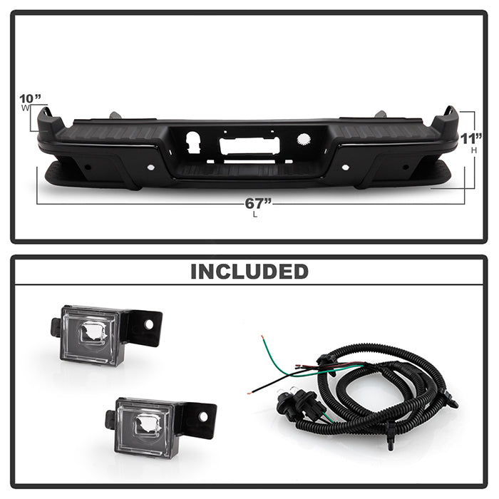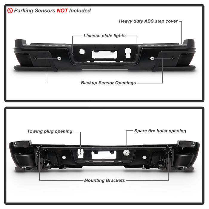 ( xTune ) Chevy Colorado 2019 / GMC Canyon 2019 w/ Parking Sensor Holes Rear Bumper Assembly ( Step Pad and Side Bumper End Included ) ( Compatible w/Parking Sensor Model Only ) - Black (Part Link # GM1103205 OEM # 84427123 )