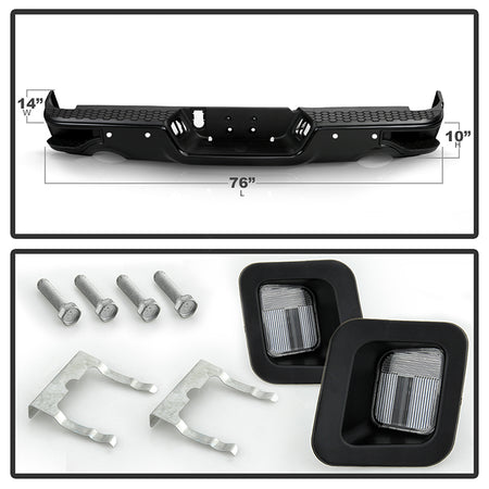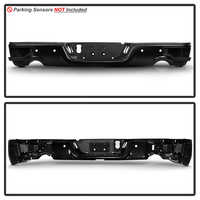 ( xTune ) Dodge Ram 1500 09-18 / Ram 2500 3500 10-12/ Ram 1500 Classic 19 with Parking Sensor Hole Only Fit Dual Exhaust Models Corner Step Style Steel Rear Bumper - Black ( Brackets Hardware And Step Pads All Included ) ( OEM Part # CH1103124P)