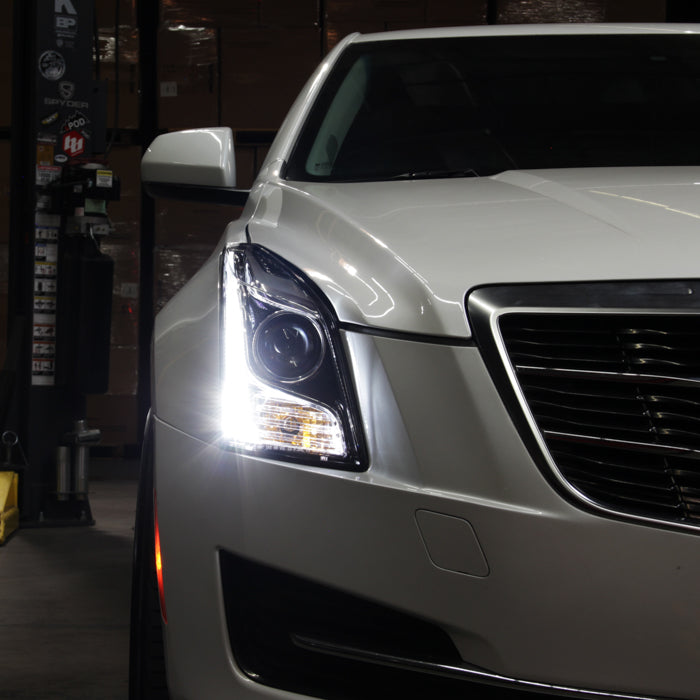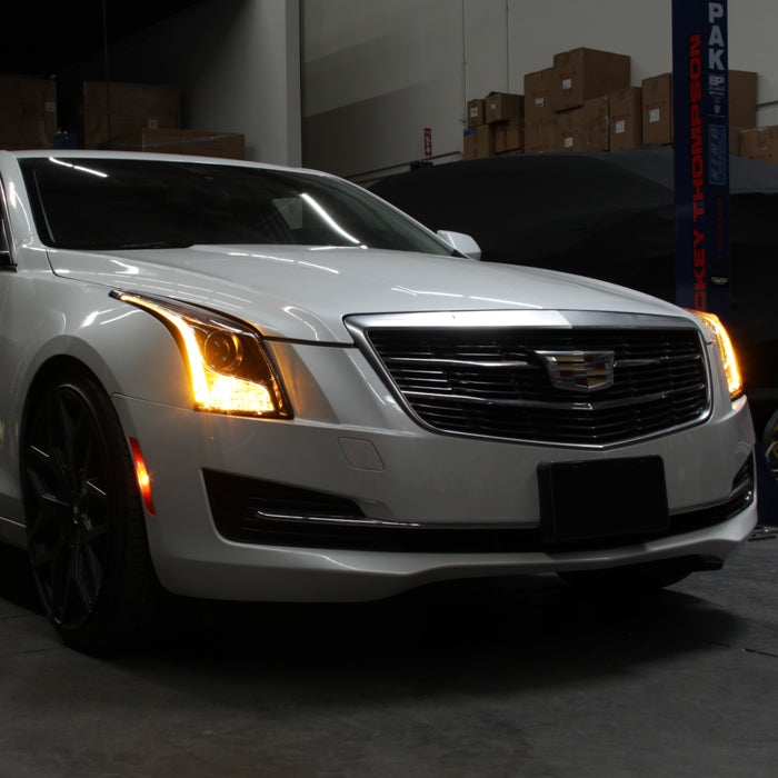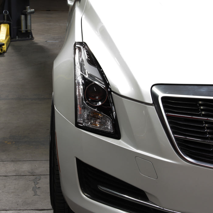 Cadillac ATS 13-18 w/LED DRL Projector Headlights Fit Halogen Model -Low Beam-H7(Included) ; High Beam-H7(Included) ; Signal-7444NA(Included) - OE Chrome