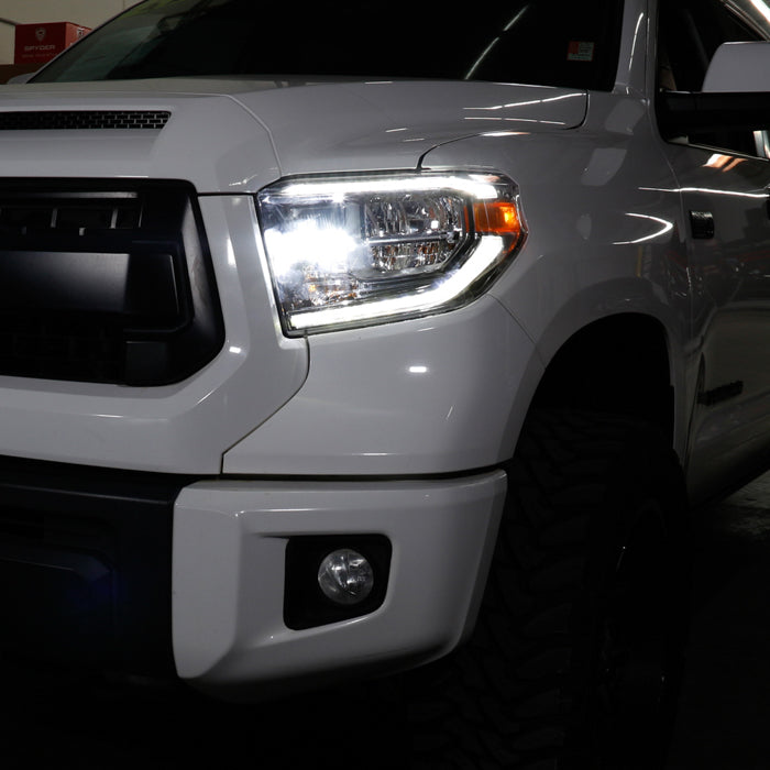 ( OE ) Toyota Tundra 18-20 (Fit LED Headlights Model only) OEM Style Headlights - Low Beam-LED ; High Beam-LED ; Signal-7444NA(Included) - Chrome Left