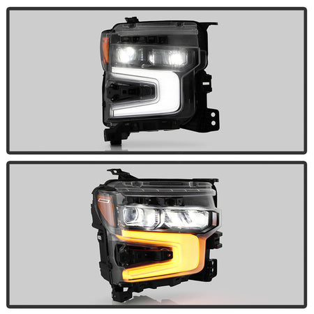 ( POE ) Chevy Silverado 22-24 1500 (ZR2 White LED DRL) LED reflector (high intensity) with LED signature curtain DRL and White tracer animation Black Bezel Headlight - OE Black Right