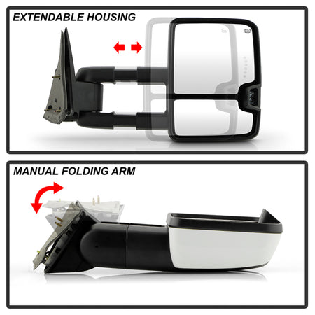 ( xTune) Chevy Silverado / GMC Sierra 03-06 Power Heated LED Signal Manual Fold Tow Mirrors - White Paint SET