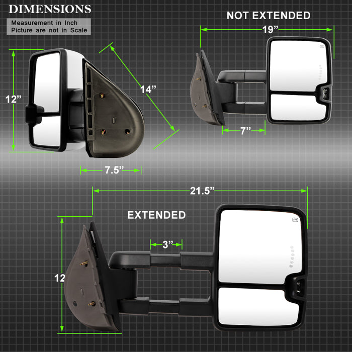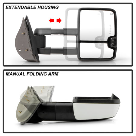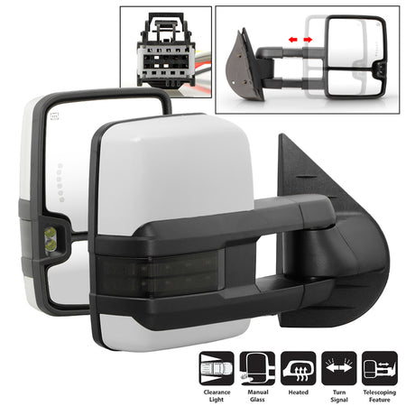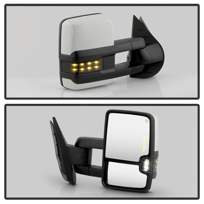 ( xTune) Chevy Silverado / GMC Sierra 07-13 Power Heated LED Signal Manual Fold Tow Mirrors - White Paint SET